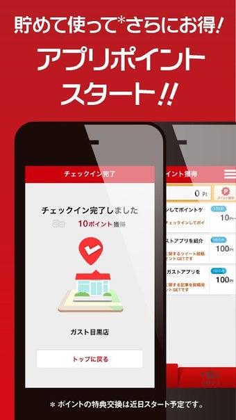 また、店舗チェックイン、SNSでのアプリ紹介など特定の条件を満たすことでポイントを貯められます。貯まったポイントはポイントプログラム限定のクーポンや様々な特典と交換可能になります(2014年10月15日時点では、ポイント交換機能は近日スタート予定です)。