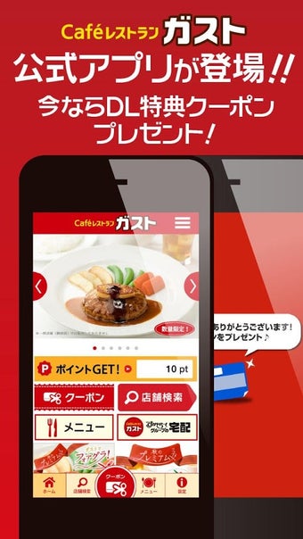 ガストアプリは、人気ファミリーレストラン「ガスト」の公式アプリです。アプリ限定クーポンでお得にお食事を楽しめる他、店舗検索やフェア情報をチェックできます。